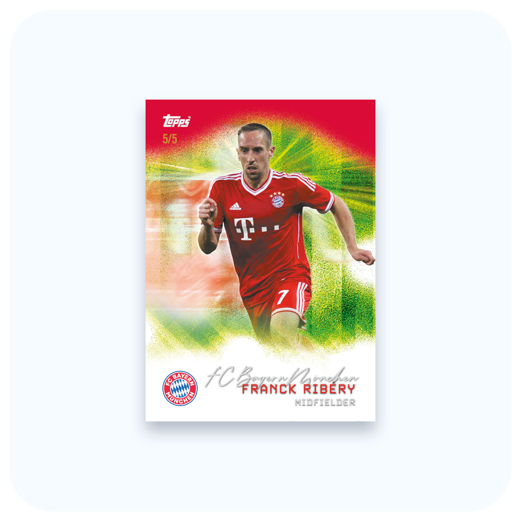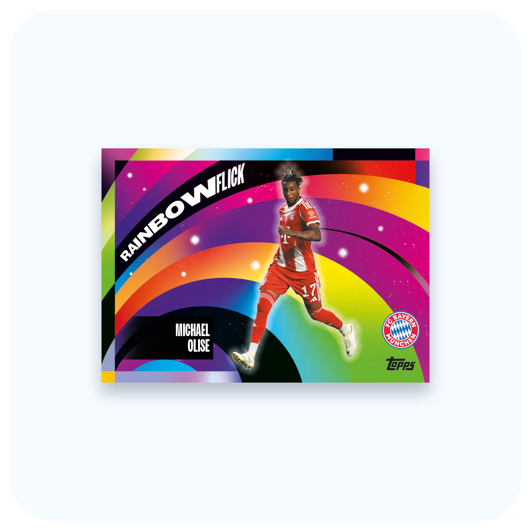 W bazowym zestawie znajdziesz komplet kart First Squad, dynamiczne Pitch Pursuits, prestiżowe Bona Fide Baller oraz ekskluzywne Collectors Corner. Nie zabraknie też wyjątkowego klubowego inserta “Die Bayern”, podkreślającego charakter i tradycję zespołu. Wisienką na torcie są efektowne Rainbow Flick, które dodają kolekcji kolorowego blasku.