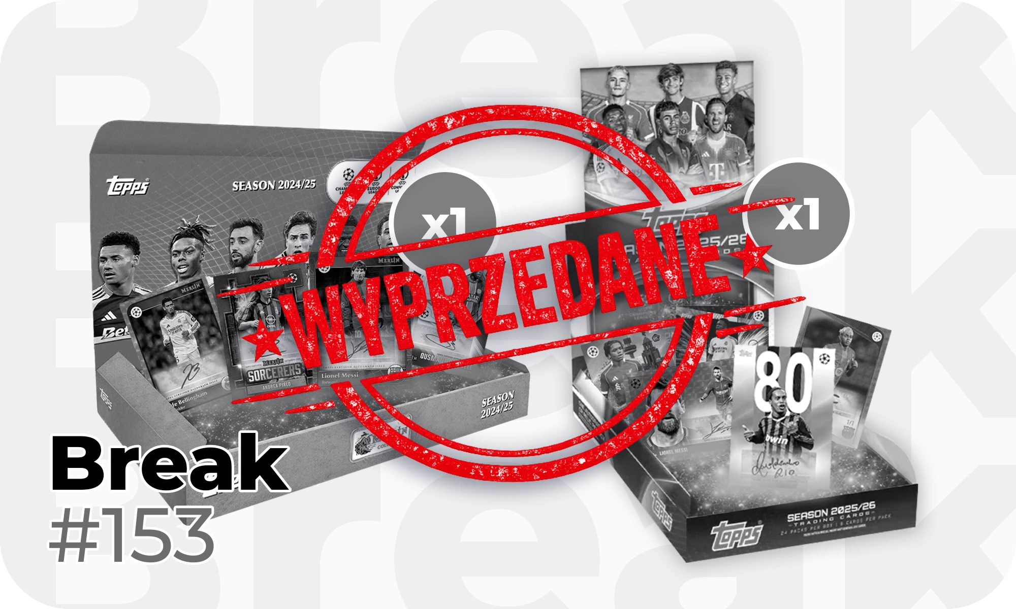 Break zostanie przeprowadzony na żywo na naszych kanałach YouTube oraz Twitch, w najbliższym możliwym terminie po wyprzedaniu wszystkich spotów. Dokładna data oraz godzina transmisji zostaną podane na naszym Discordzie oraz grupie na Facebooku. Wszystkie karty przypisane do spotu trafiają do kupującego. Jeżeli w trakcie breaka pojawią się karty przedstawiające więcej niż jednego zawodnika/managera z różnych klubów, ich przydział zostanie rozstrzygnięty na transmisji pomiędzy uprawnionymi uczestnikami. Kupując spot w usłudze breaku nabywca zgadza się na powyższe zasady i akceptuje regulamin Breaków, dostępny w rozdziale 8 regulaminu sklepu punkt 10
